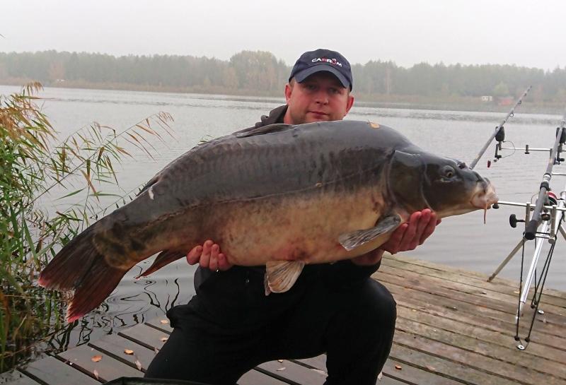 Pierwszy rzut oka i myślimy jest ok będzie rybka do wymiany. Po przypłynięciu na pomost, przenosimy rybkę na matę. Gdy już ją wyciągaliśmy było widać że jest sporych rozmiarów. Taruje więc worek, ważymy i wiem już że to moje nowe PB. Ranne ważenie przez sędziów potwierdza nasze przypuszczenia, ryba ma 18,400 kg, które od tego momentu staje się moim nowym rekordem. Warto dodać że tego wieczora Piotrek również miał sporą rybę na haku, ale niestety tym razem rybka wygrała.W ostatni dzień na moim zestawie zameldował się piękny karp z bardzo specyficznym brzuchem który ważył 13,6 kg, karpik ten również skuśił się na zestaw z bałwankiem 2x12 mm. W nocy udało mi się dołowić jeszcze dwie ryby, ale ich waga (8kg , 11 kg) nie zmieniły już nic w naszym wyniku. Ogólnie udało nam się wyholować 7 karpi i leszcza, waga ryb liczonych w klasyfikacji to 43 kg. Tym wynikiem udało nam się wygrać sektor którego sponsorem była firma Prologic.